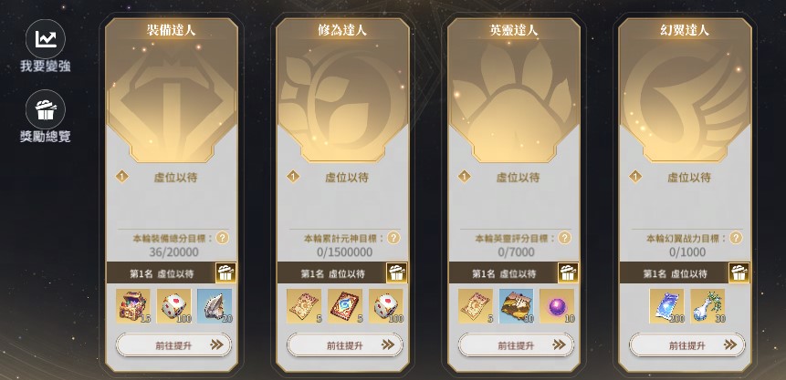新服開啟群雄逐鹿活動,所有玩家活動期間內達成多階段目標可領取豐厚獎勵,達成速度排名靠前者還可領取更豐厚的獎勵。